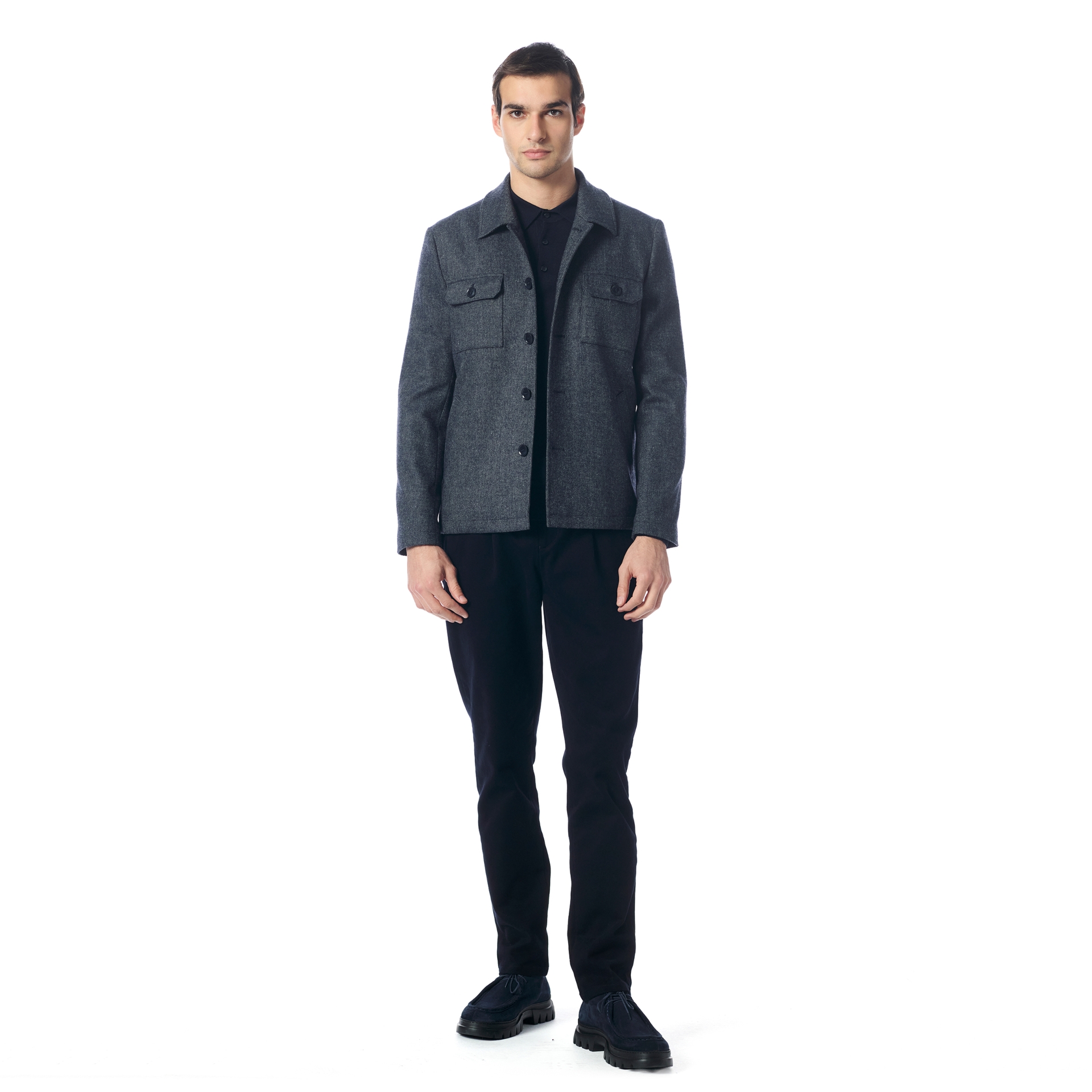 Gömlek yaka detayı, göğüs cepleri kapaklı ve ön tarafında düğme kapatmalı olan bu mont, yün, viskon, polyester ve elastan karışımı kumaş özellikleriyle konforlu ve şık bir seçenek sunuyor.